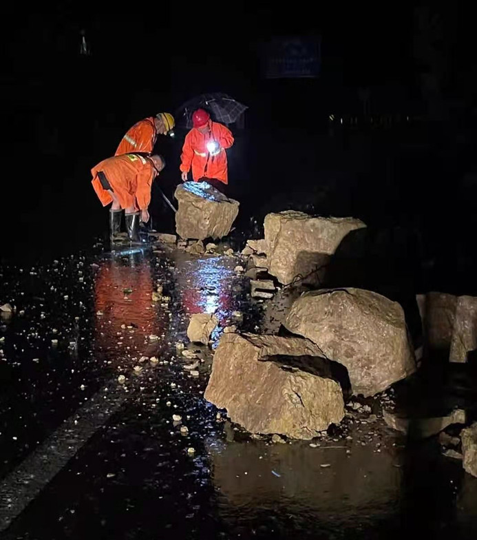 面對險情,路橋公司嚴(yán)格遵循“安全第一、先通后暢、先輕后重”的搶險原則,認(rèn)真部署,密切配合,第一時間組織應(yīng)急搶險人員、機(jī)械、設(shè)備到達(dá)受災(zāi)路段全力進(jìn)行搶通保通。截止7月16日上午9:30,共計投入搶險機(jī)械16個臺班,搶險人員118人次,清理垮方3240余立方米,清除倒伏行道樹10株,疏通積水路段排水設(shè)施13處,確保了管養(yǎng)公路暴雨期間安全暢通。