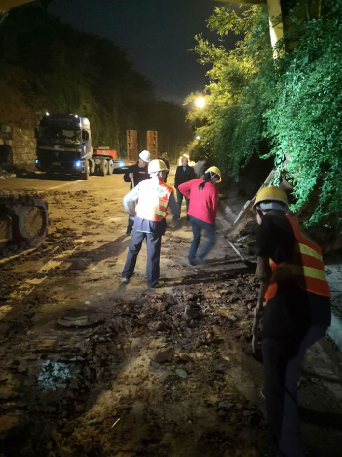 9月16日下午,該處道路邊坡?lián)跬翂σ蛲临|(zhì)松軟突然發(fā)生大面積垮塌,造成道路中斷,給過(guò)往車(chē)輛和行人通行造成不便和安全隱患。接到險(xiǎn)情緊急通知后,路橋公司副總經(jīng)理張鵬及相關(guān)部門(mén)負(fù)責(zé)人員迅速趕到現(xiàn)場(chǎng)實(shí)地查勘,并立即啟動(dòng)應(yīng)急搶險(xiǎn)預(yù)案,共組織大型挖掘機(jī)三臺(tái)、運(yùn)渣車(chē)16輛,工人十余人趕赴現(xiàn)場(chǎng)進(jìn)行搶險(xiǎn)。在確保安全的前提下,搶險(xiǎn)人員履職盡責(zé)、日夜堅(jiān)守,強(qiáng)化責(zé)任擔(dān)當(dāng),密切協(xié)作配合,發(fā)揚(yáng)了不畏艱苦、不怕疲勞、連續(xù)作戰(zhàn)的優(yōu)良作風(fēng),通過(guò)一晝夜奮戰(zhàn),清運(yùn)垮塌土方共計(jì)1600立方米,爭(zhēng)分奪秒搶通了道路,堅(jiān)決有力的完成了搶險(xiǎn)工作?!?/p>