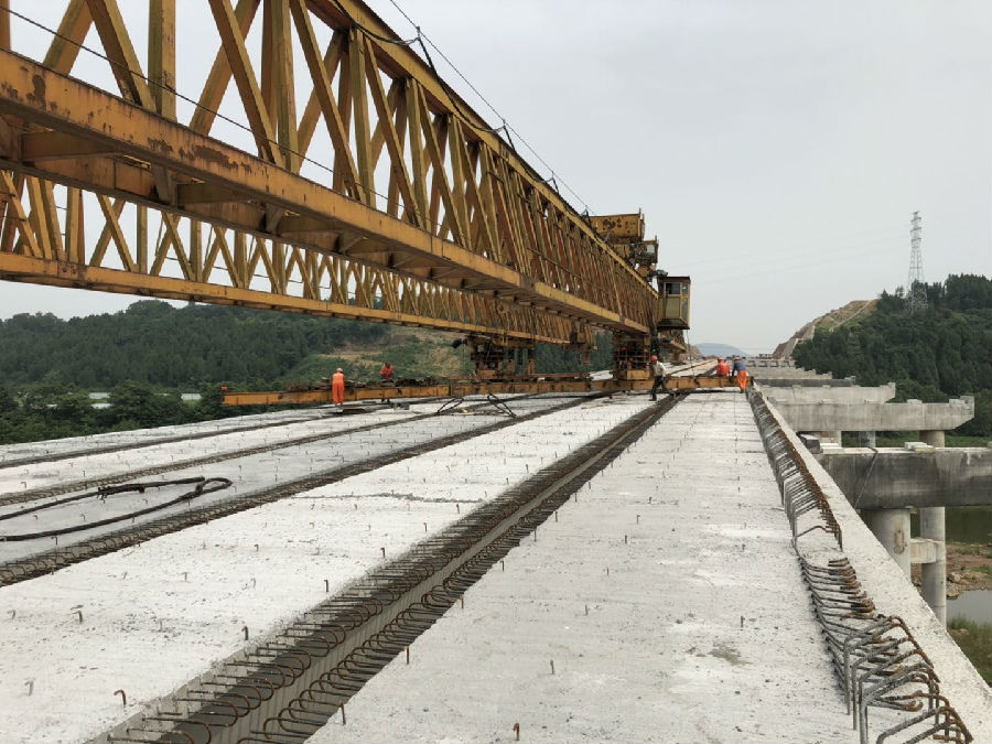目前,該橋已開始進(jìn)行左側(cè)梁板架設(shè),預(yù)計8月底完成全幅梁板架設(shè),橋梁上部施工正在同步加快推進(jìn)。