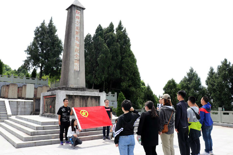 郁郁蒼蒼飛龍山,坎坎坷坷長(zhǎng)征路。在紀(jì)念廣場(chǎng)上,團(tuán)員青年認(rèn)真了解了革命先烈英勇無(wú)畏的事跡,據(jù)歷史記載,紅軍長(zhǎng)征時(shí)期,紅12師34團(tuán)在飛龍山駐扎、戰(zhàn)斗和生活19天,遺留下蘇維埃舊址、戰(zhàn)壕等紅色歷史遺跡。在紅軍長(zhǎng)征紀(jì)念碑前,團(tuán)員青年向革命先烈敬獻(xiàn)菊花,默哀致敬,表達(dá)對(duì)先烈的緬懷之情。在團(tuán)支部書記李越的帶領(lǐng)下,全體團(tuán)員青年重溫了入團(tuán)誓詞,銘記時(shí)代青年的責(zé)任和使命。隨后,跟隨講解員的腳步,大家重走長(zhǎng)征路,參觀了飛龍洞、紅軍戰(zhàn)壕、跑馬場(chǎng)等景點(diǎn),探尋當(dāng)年紅軍留下的遺跡,追尋紅色記憶。