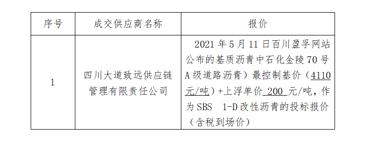 瀝青供應(yīng)商采購比選結(jié)果公告