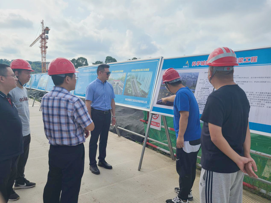 ? ? ?7月21日,交發(fā)集團紀委書記陳劍對恒通建工西山立交及平政高架橋病害綜合整治工程,東西第二干道(PPP)項目,科技城大道二期涪江大橋工程項目等重點工程項目現(xiàn)場進行調(diào)研。恒通建工董事長、黨支部書記王智勇,副總經(jīng)理李成虎,工程部、項目管理部負責人陪同調(diào)研?!?br />