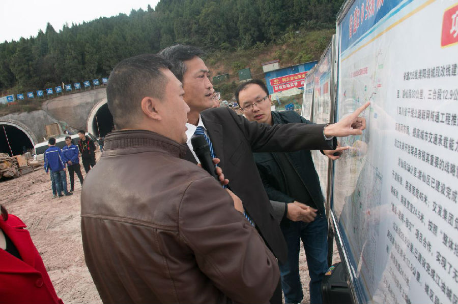2018年11月7日下午,集團(tuán)公司領(lǐng)導(dǎo)班子成員調(diào)研金家林新增大型戶外宣傳牌、省道205老龍山隧道工程、繞城高速永明互通立交主線工程等重點項目。