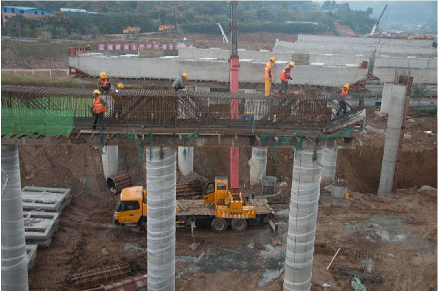 由綿陽交通發(fā)展集團組織實施的綿陽繞城高速公路南環(huán)線永明互通立交主線K33+155~K33+663段土建工程全長508.03米,包含鉆孔灌注樁110根,橋梁墩柱110個,箱梁制架210片,起點接綿陽繞城高速公路南環(huán)線,終點位于綿遂高速公路上方,接綿西高速公路起點,與綿遂高速公路形成十字型互通,項目于2018年5月18日進場施工,計劃工期6個月。