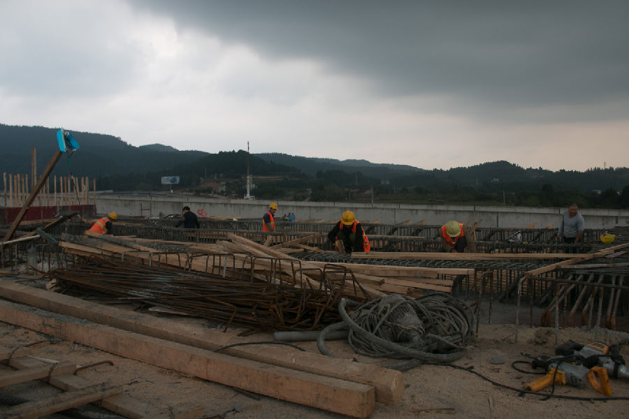對于工程施工來說六、七月本是干活的最佳時機,但偏偏天公不作美,連續(xù)的暴雨天氣延誤了二十二天的工期,給施工生產(chǎn)進度造成了極其嚴重的影響,重重壓力下,集團公司領導班子帶頭堅守在施工生產(chǎn)一線進行督導,項目部一方面增加大量的人力物力;另一方面加大施工力度,優(yōu)化每道施工工序,確保24小時運轉(zhuǎn),施行人停機不停,全體參戰(zhàn)人員不分晝夜,卯足干勁,連續(xù)作戰(zhàn)工作,將箱梁日均生產(chǎn)能力逐步提高,使制梁、架梁施工工作得到有序推進:8月7日開始每天日穩(wěn)產(chǎn)2片梁,8月23日第一次生產(chǎn)3片梁,從9月4日開始實現(xiàn)了每天穩(wěn)產(chǎn)3片梁的目標,并在9月17日首次突破日產(chǎn)4片梁的生產(chǎn)記錄,架梁也取得了日架8片的新紀錄。