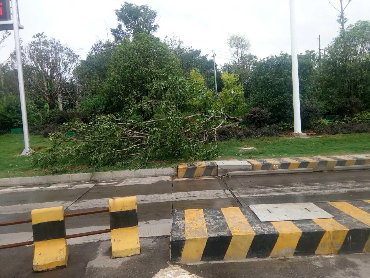 7月16日凌晨,綿陽市區(qū)出現(xiàn)短時雷雨大風極端天氣,部分地方瞬時風速每秒25米,再加上高強度的降雨,導致市區(qū)兩千多株樹木倒伏。16日清晨6點,集團下屬綿陽路橋公司立即組織相關(guān)巡查工作,在巡查中發(fā)現(xiàn)磨家收費站綠化帶發(fā)生大量綠化苗木倒塌險情。