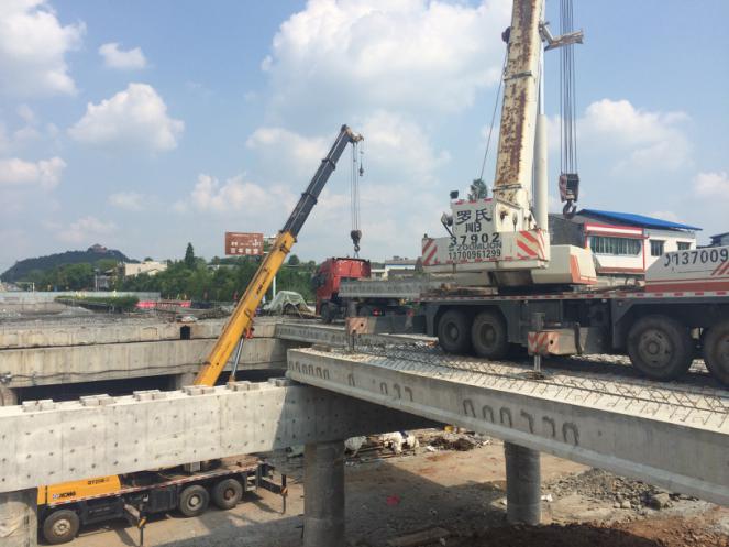 7月14日,在魏柳河一號橋災(zāi)損搶險工程建設(shè)工地,2臺(75噸和50噸)吊車將一根長16米、重達20噸的預(yù)應(yīng)力箱梁梁板穩(wěn)穩(wěn)地架設(shè)在了魏柳河一號橋第一跨橋梁兩端橋墩上,這標(biāo)志著魏柳河一號橋災(zāi)損搶險工程已進入最后沖刺階段。