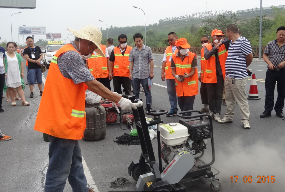 上午十點(diǎn),來自各縣、市、區(qū)公路管理所、養(yǎng)護(hù)公司四十多名參會(huì)代表在市交通運(yùn)輸局公路管理處的組織下來到九嶺養(yǎng)護(hù)站管養(yǎng)的省道S205線綿江路龍門坡(K277+100—K277+600)進(jìn)行現(xiàn)場觀摩。通過路橋公司高等級(jí)公路養(yǎng)護(hù)公司經(jīng)理馬斌現(xiàn)場詳細(xì)介紹,代表們仔細(xì)觀摩了貼縫帶貼縫、普通瀝青灌縫、開槽灌密封膠、薄層修復(fù)、熱再生修補(bǔ)等路面施工過程和完工效果,充分了解了這幾種新設(shè)備和新工藝的操作流程,并進(jìn)行了相關(guān)工作交流,對(duì)公司在預(yù)防性養(yǎng)護(hù)方面取得的成績給予高度贊揚(yáng)。