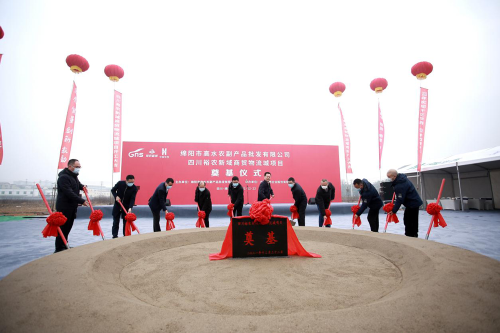 四川裕農(nóng)新域商貿(mào)物流城位于綿陽市城北農(nóng)副產(chǎn)品物流產(chǎn)業(yè)園,項目總規(guī)劃用地面積約500畝,總建筑面積約40萬㎡,計劃投資22億元,分六期開發(fā),是高農(nóng)司傾力打造的集大宗農(nóng)產(chǎn)品交易、地標(biāo)農(nóng)產(chǎn)品展示、冷鏈倉儲、加工配送、電商中心、中央大廚房、綜合服務(wù)配套、智慧運營等產(chǎn)業(yè)鏈功能的第四代智慧型農(nóng)批交易大平臺。項目以農(nóng)批產(chǎn)業(yè)鏈為依托,與城市發(fā)展相融合,形成以產(chǎn)促城,以城興產(chǎn),產(chǎn)城融合的發(fā)展模式。項目統(tǒng)一規(guī)劃分期實施,其中一期、二期、三期先行統(tǒng)一開發(fā)建設(shè),并于2021年12月22日奠基開工,計劃2023年上半年投入運營使用,項目規(guī)劃用地面積約129畝,總建筑面積約11.7萬平方米,主營包括大宗蔬菜、干調(diào)、副食品、地標(biāo)特色農(nóng)產(chǎn)品等業(yè)態(tài)的批發(fā)交易、展示。截止目前,項目已完成一期1#、2#樓基礎(chǔ)施工,正進(jìn)行主體施工;3#樓正進(jìn)行地基開挖工作;二期5#樓正進(jìn)行基礎(chǔ)澆筑施工,4#、6#樓正進(jìn)行地下室開挖工作。