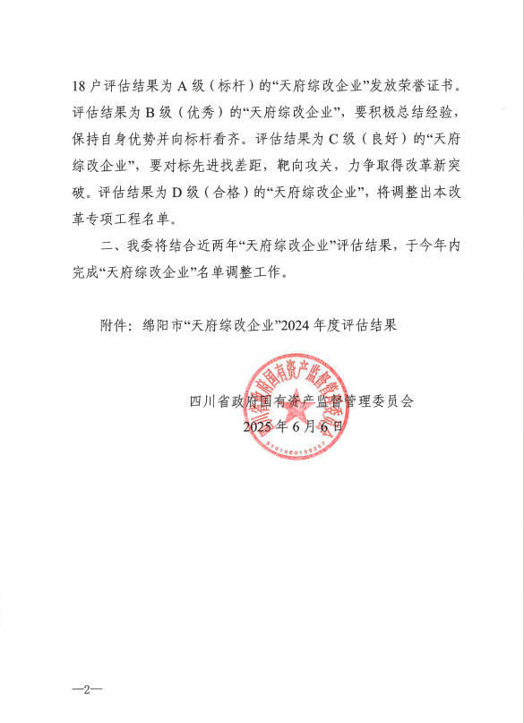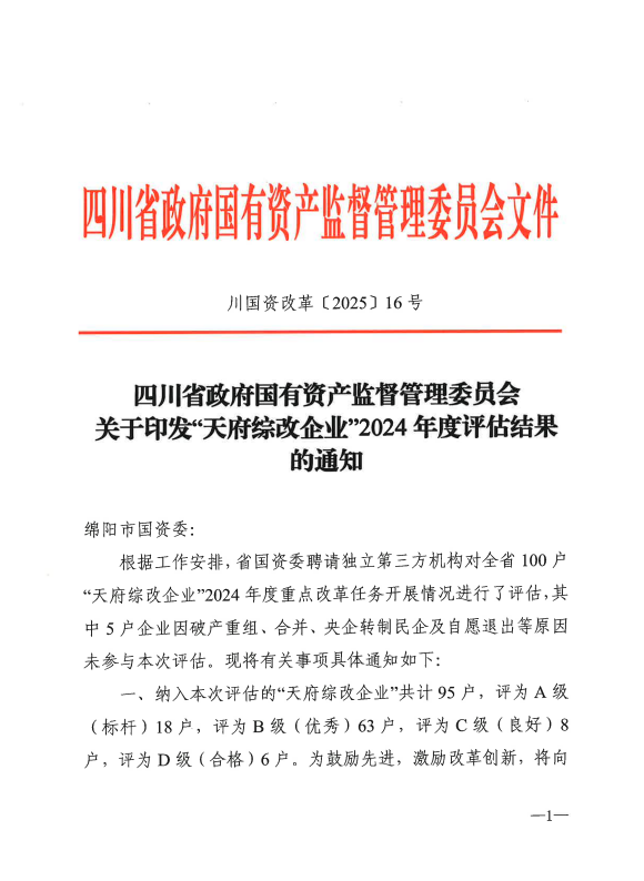 喜報丨高農(nóng)司在省國資委“天府綜改企業(yè)” 2024年度評估中榮獲優(yōu)秀等級