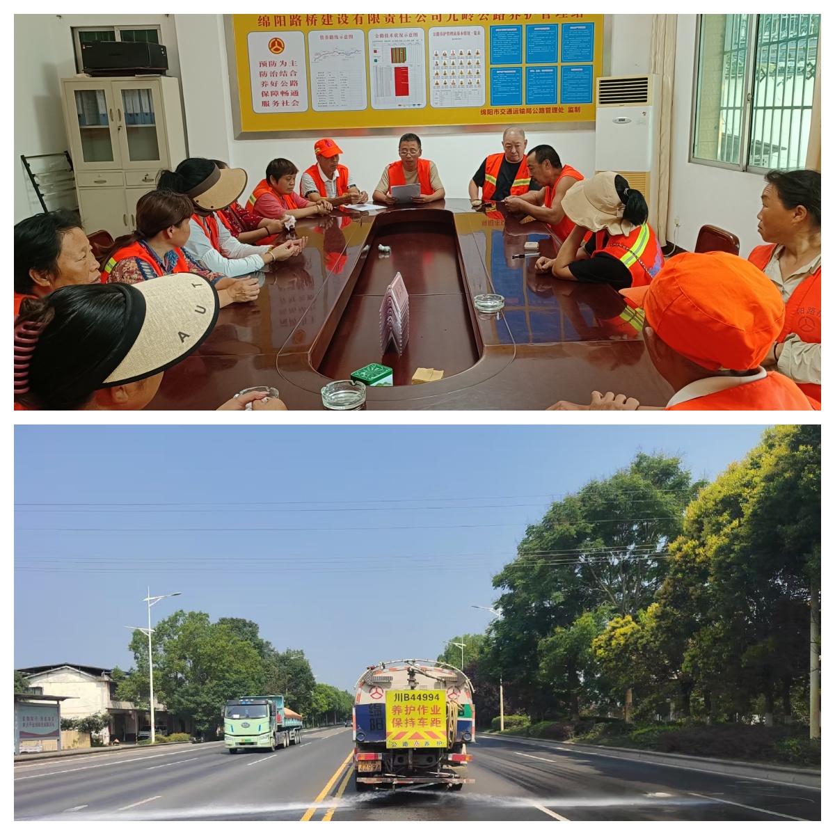 針對高溫天氣道路管養(yǎng)工作,路橋集團一是科學調整作業(yè)時間。嚴格執(zhí)行“抓兩頭、歇中間”錯峰工作制度,將養(yǎng)護作業(yè)集中在清晨7:00-10:00、下午16:00-18:30,避開高溫時段,最大限度減少養(yǎng)護工人中暑風險。同時,安排專人監(jiān)測氣溫變化,日最高氣溫≥40℃時,停止戶外作業(yè)。二是加大機械化作業(yè)力度。為有效應對本輪高溫天氣和臭氧污染,嚴格按照《綿陽市普通國省干線公路日常養(yǎng)護領域揚塵防控工作專項方案(第七版)》要求,加密管養(yǎng)道路灑水降塵頻次,每天出動10輛洗掃車、9輛灑水車、2輛掃地車,為道路消暑降溫。三是嚴格落實防暑保障措施。公司為190名道路養(yǎng)護工人配備手套、防曬面罩等防護裝備,發(fā)放藿香正氣液、風油精、夏桑菊顆粒等防暑物資,強化防暑保障,落實人文關懷。四是加強一線安全教育。定期開展高溫作業(yè)安全培訓,重點強調防暑、防灼傷、防車輛事故等注意事項,切實提升養(yǎng)護工人高溫作業(yè)安全意識和防護措施。規(guī)范現(xiàn)場管理,作業(yè)區(qū)域嚴格設置警示標志,配備反光錐桶、警示燈,并安排專人值班值守,確保施工路段作業(yè)安全。