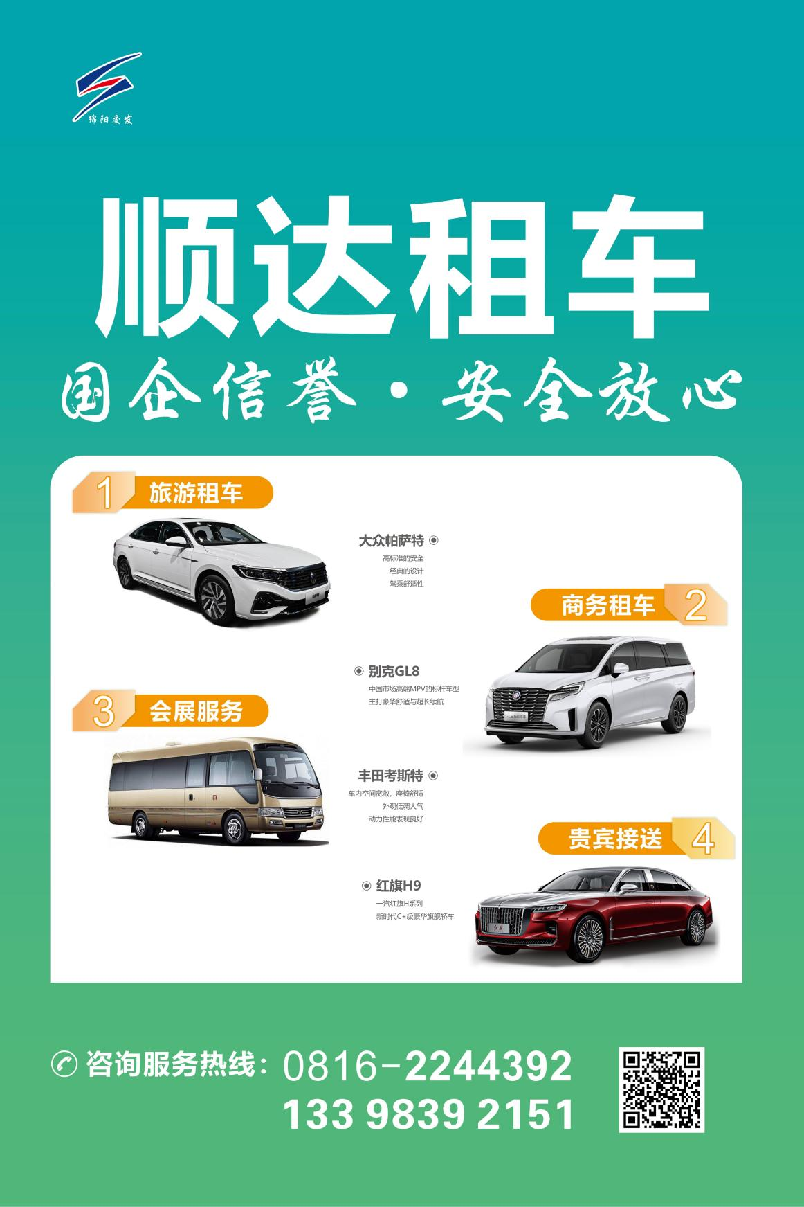 專注本土更專業(yè)。順達租車是綿陽全資國企,依托本土資源優(yōu)勢可提供“全車型矩陣+全城網(wǎng)絡(luò)”服務(wù),車型覆蓋5座至53座,服務(wù)場景囊括機場(高鐵)接送、商務(wù)接待、會議通勤、活動會展、企業(yè)班車等。配備持有營運資質(zhì)的專業(yè)司機團隊,駕駛經(jīng)驗豐富,職業(yè)素養(yǎng)高,熟悉綿陽交通、線路、景點、美食等多方面信息,為旅客提供中國唯一科技城正確打開方式。