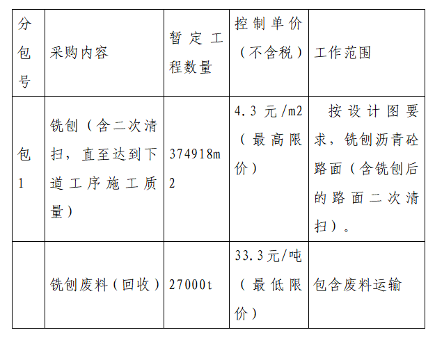 4、競得方式:一次報(bào)價(jià),最低報(bào)價(jià)法(其中:銑刨廢料回收按報(bào)價(jià)最高法),銑刨和廢料回收總價(jià)經(jīng)計(jì)算后,招標(biāo)人綜合發(fā)生成本最低者中標(biāo);若一次報(bào)價(jià)中最低報(bào)價(jià)有相同的,由招標(biāo)人綜合評判確定成交單位。 ?