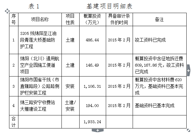本次委托審計(jì)的四個(gè)項(xiàng)目基本情況如下: